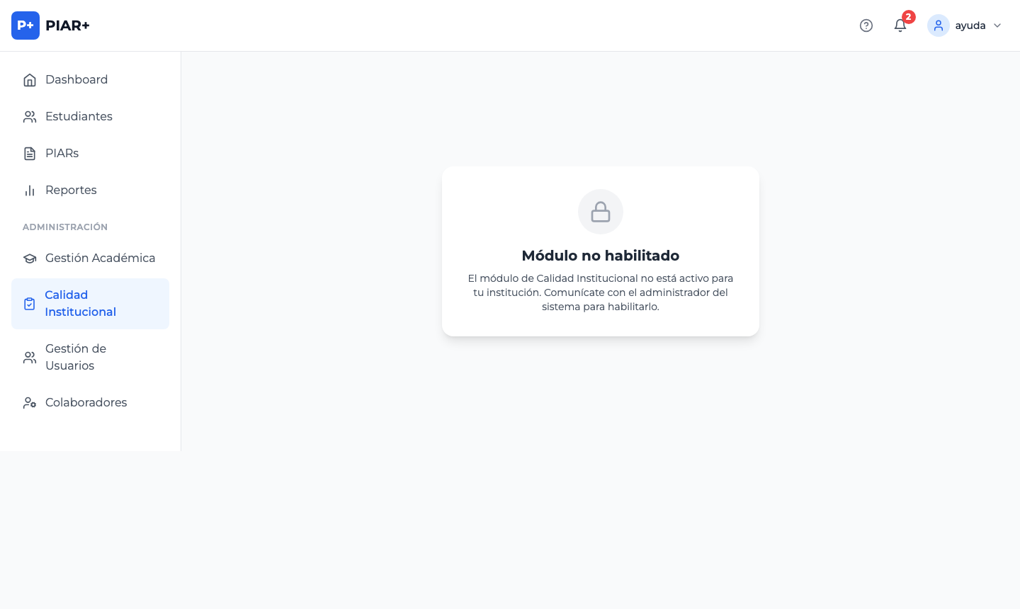 El Módulo de Calidad solo está disponible para usuarios con rol de Coordinador, Rector o Administrador, y solo si el administrador del sistema (superadmin) ha habilitado el módulo para la institución.