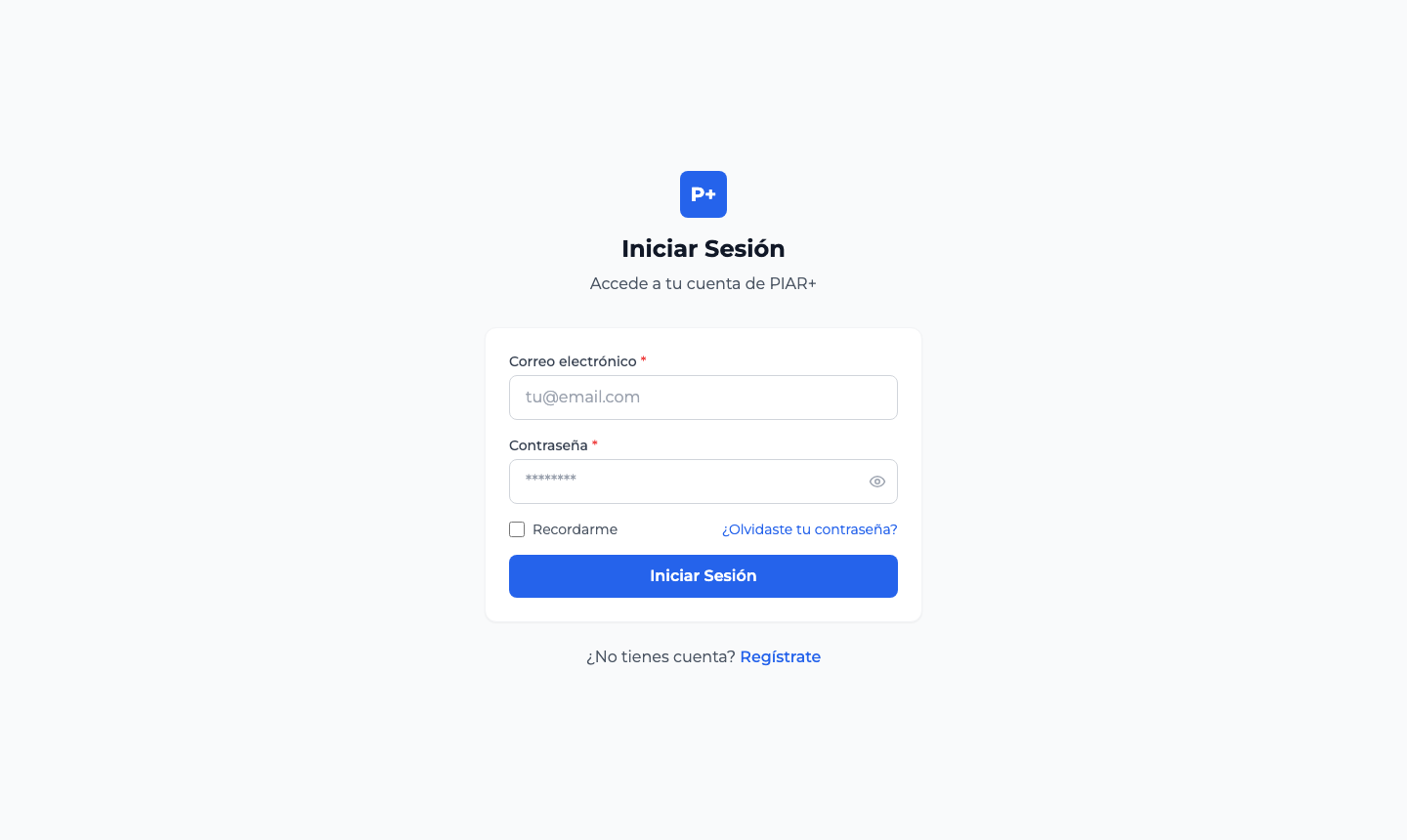 PIAR+ es una plataforma web que funciona directamente en su navegador. No necesita instalar ninguna aplicación.